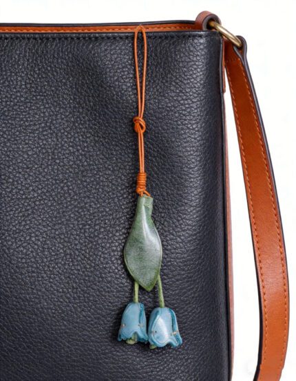 Handmade Leather Lily of the Valley Bag Charm (Elegant Serenity)