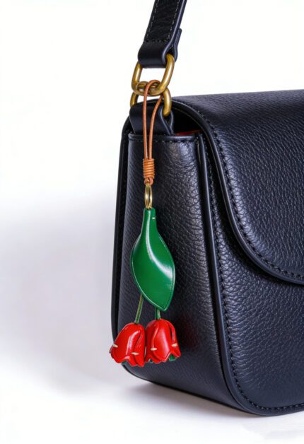 Handmade Leather Tulip Bag Charm (Vibrant Spring Bloom)