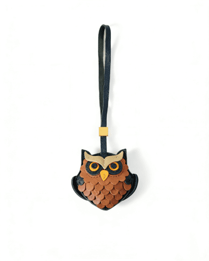 Handmade Leather Owl Charm (Black & Brown Scaled Feather Version)