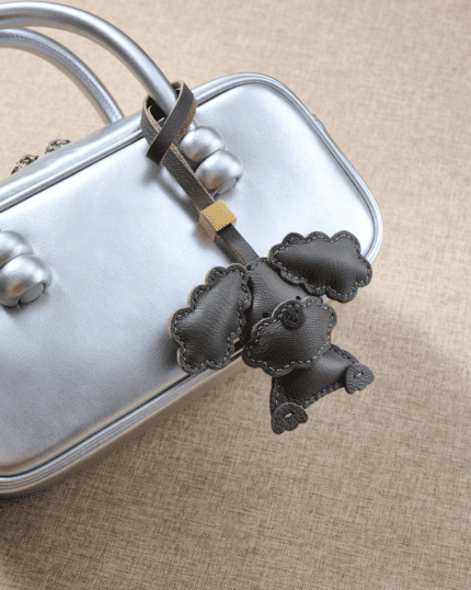 Handmade Leather Grey Poodle Luggage Charm (Lucky Fortune & Elegant Guardian Version)