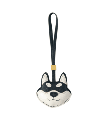 Handmade Leather White Shiba Inu Luggage Charm (Lucky Shiba Fortune & Loyal Guardian Version)