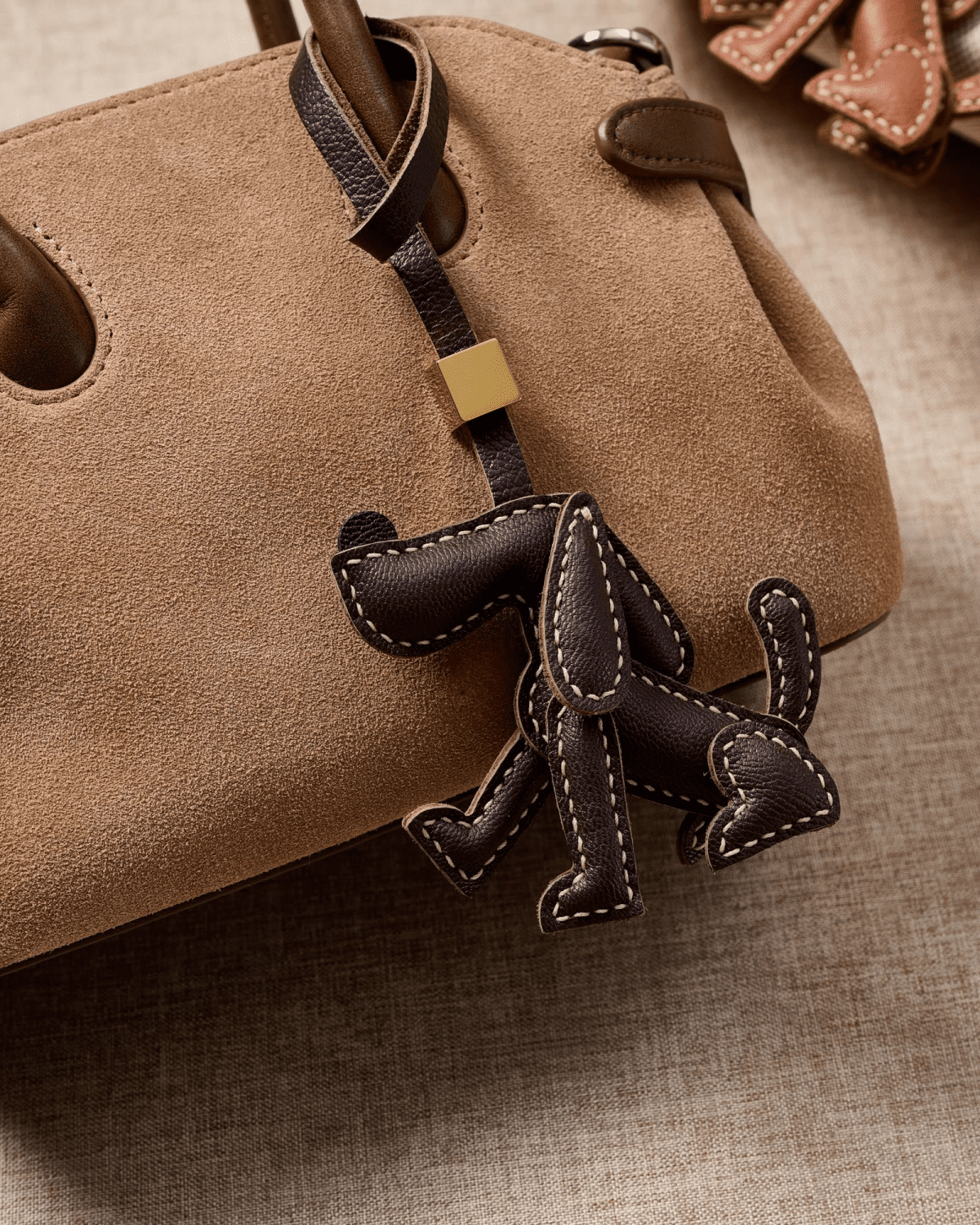 Forged from buttery-soft full-grain cowhide and stitched entirely by hand into a fully three-dimensional sculpture, this charming deep coffee puppy charm hangs by your side like a tiny piece of the unwavering loyalty, quiet comfort, and steady companionship your furry friend brings every single day. With its endearing floppy ears, playful raised paw, and timeless minimalist silhouette, it carries the universal spirit of a dog—the way they greet you at the door with a wagging tail no matter how your day went, the way they sit quietly beside you through long work nights and lazy weekends, the way they love you unconditionally, with no expectations, just pure, wholehearted devotion. Every stitch tells a story of careful, intentional craft, and the leather softens and deepens in richness with every use, just like the bond between you and your dog, growing stronger, warmer, and more unshakable with every day it hangs by your side. It’s not just an accessory; it’s a little reminder to carry the same loyal, steady, big-hearted spirit as your puppy, to find joy in the small, simple moments, and to keep a piece of your best furry friend with you, wherever your journey takes you.
