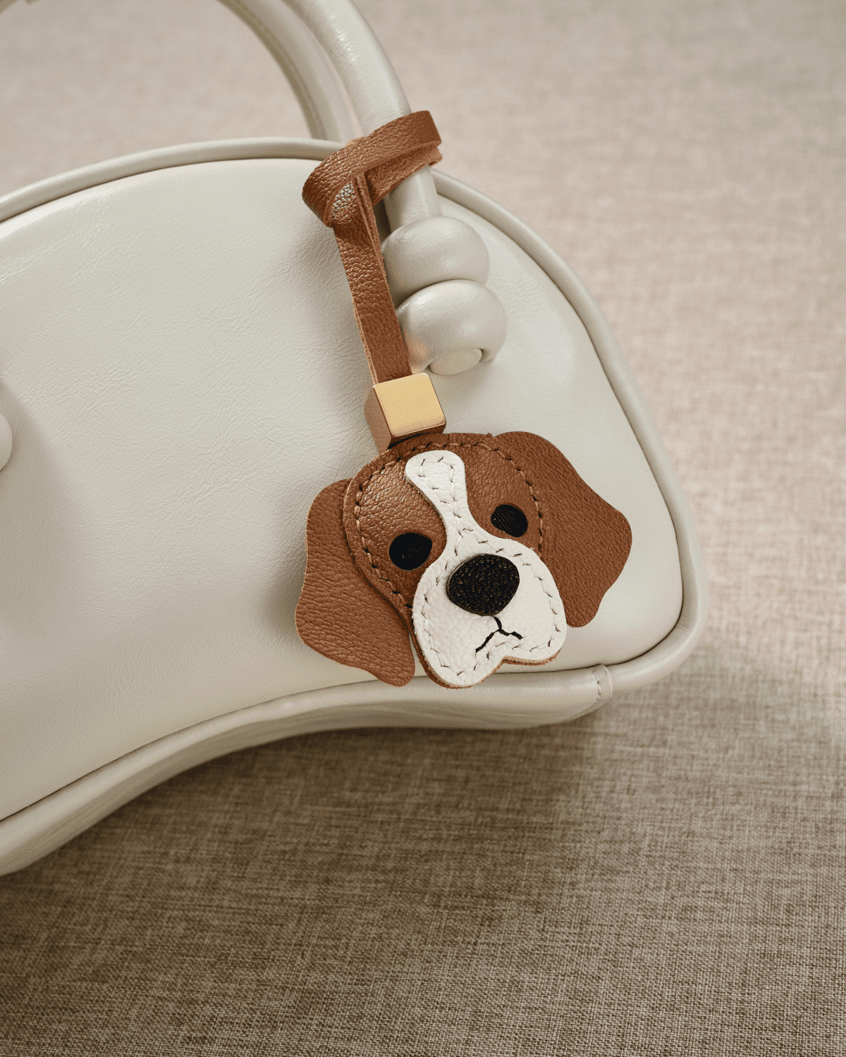 - Premium Handcrafted Full-Grain Cowhide for Timeless Durability: Meticulously hand-cut and hand-stitched from top-grade genuine full-grain cowhide, this charm perfectly recreates the iconic classic brown and white silhouette of a beloved beagle, with 3D hand-applied leather layers, lifelike hand-stitched signature white facial stripe, soft floppy ears, the breed’s gentle facial features, a cute black nose, and a durable dual-sided warm brown leather cord finished with a polished gold square accent. The natural, textured leather develops a rich, deep vintage patina with regular use, while reinforced precision stitching ensures it retains its perfect plump shape and vivid, endearing beagle character for years of daily wear, unlike flimsy mass-produced plastic or resin charms that fade, yellow, crack, or lose their form within weeks.