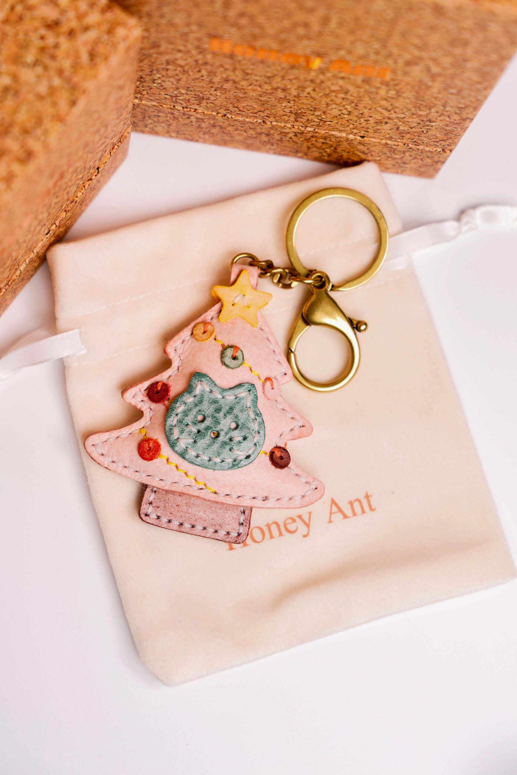 Forged from distressed cowhide and stitched by hand, this cat-themed Christmas tree charm hangs by your side—carrying the cozy warmth of holiday fires, the playful purr of a favorite feline, and the quiet magic of the season into every step you take. It’s a tiny piece of heartfelt craft, a reminder of twinkling lights, fuzzy cat naps, and the joy of blending festive cheer with feline love. The rich leather softens with time, just like the nostalgia of cherished holiday memories, growing richer and more precious with every shared smile.