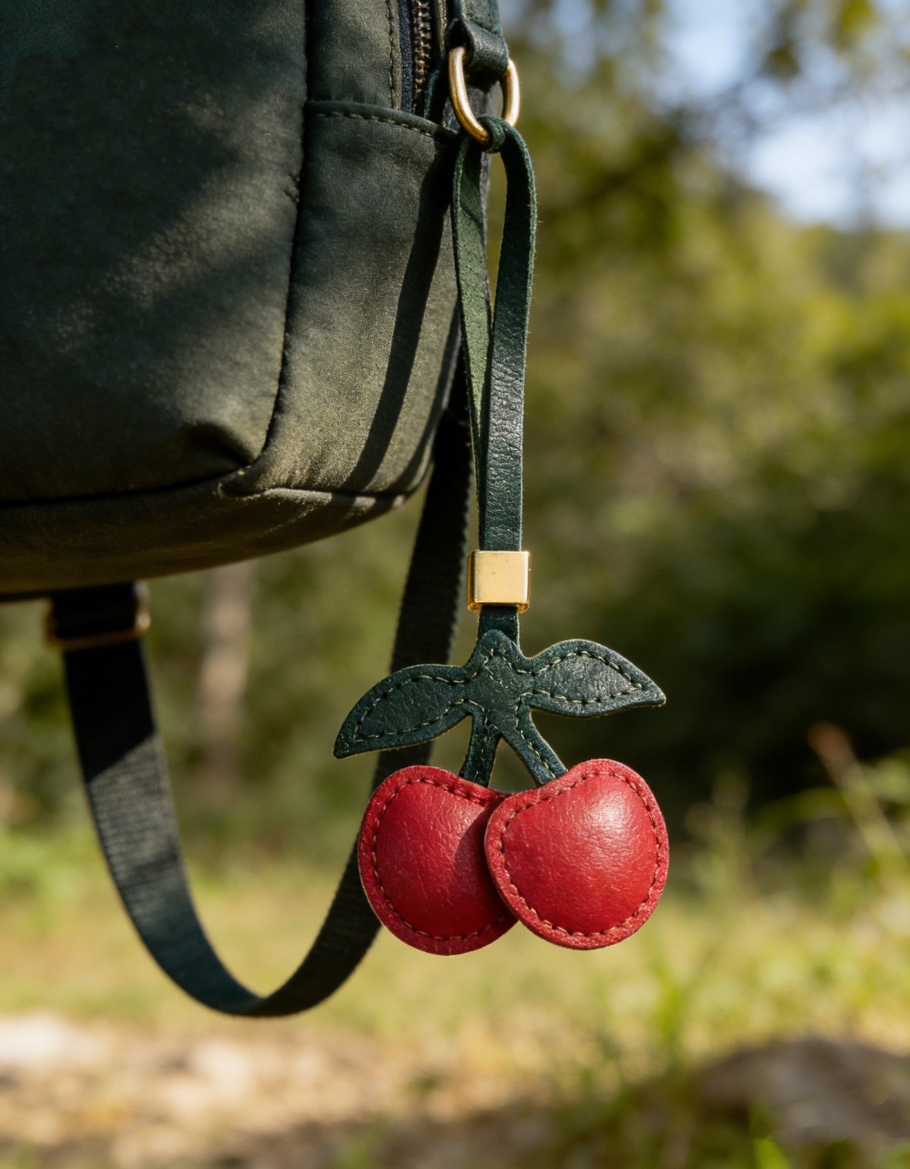 Forged from sun-kissed full-grain cowhide and stitched by hand, this double cherry charm hangs by your side like a tiny handful of summer plucked straight from a cherry orchard. With its plump red cherries, lush green leaves, and crisp stitching, it carries the sweet scent of ripe cherries, the warmth of summer sunlight, and the playful magic of picking fruit with loved ones. Each stitch tells a story of careful craft, and the leather softens with time, just like the sweet memories of summer afternoons spent in the orchard—growing warmer, richer, and more beloved with every step. It’s not just an accessory; it’s a reminder to keep your heart sweet, to savor the small joys of summer, and to carry a little piece of cherry orchard magic wherever you go.