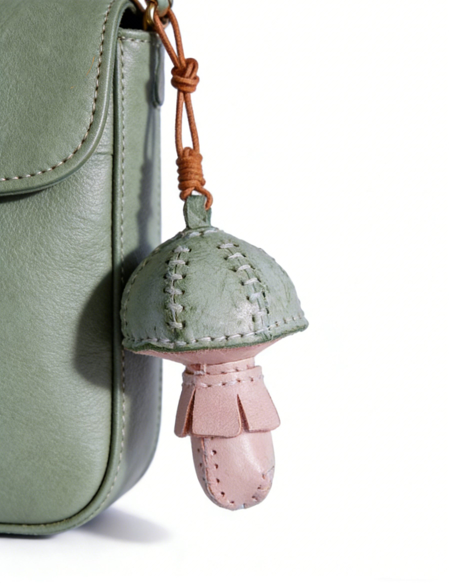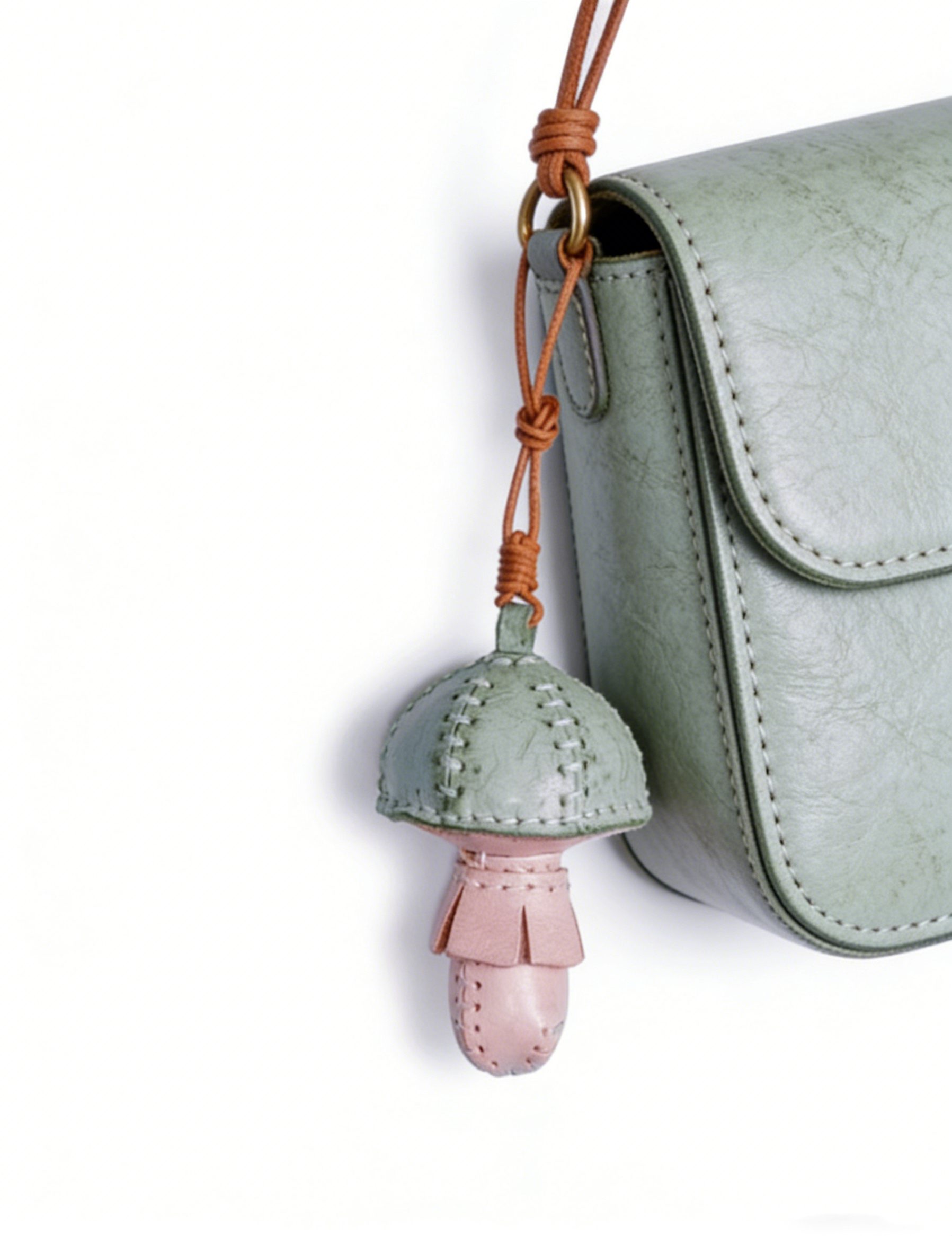 - Premium Handcrafted Cowhide: Meticulously cut and stitched from top-grade genuine cowhide, this charm features a soft mint cap, delicate blush stem, and precise hand-stitched details. The rich, textured leather develops a warm, dreamy patina over time, with reinforced edges ensuring it retains its whimsical charm for years of daily use.
