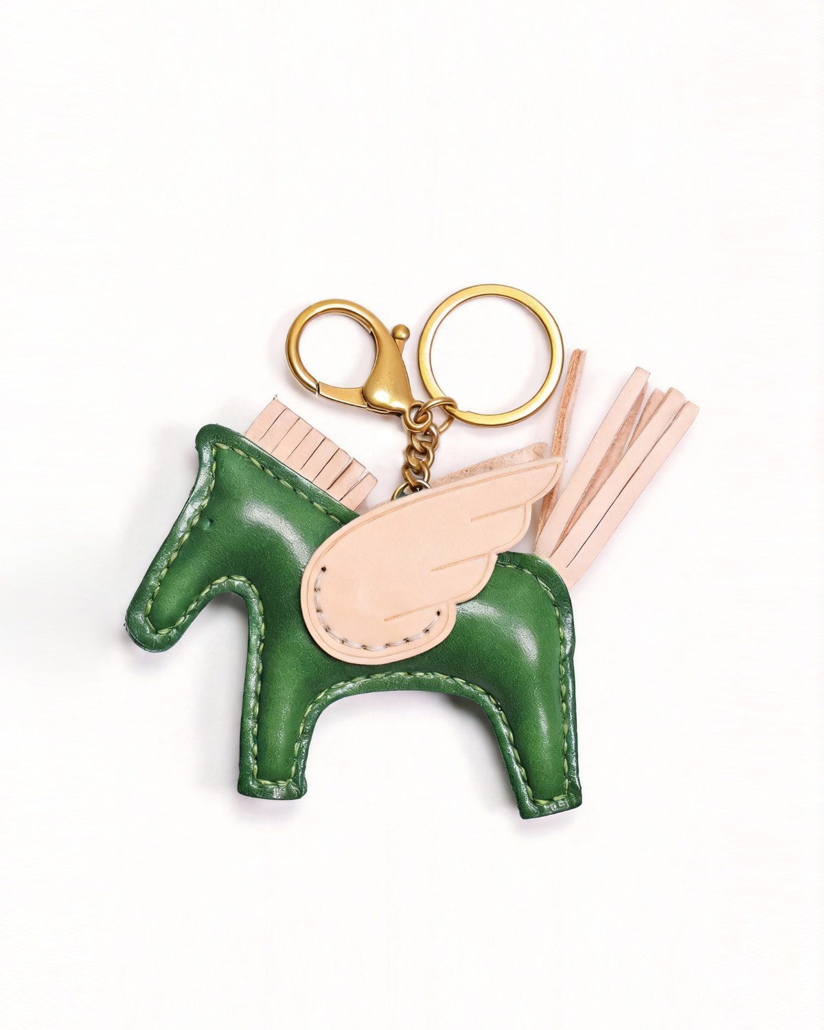 Forged from premium cowhide and stitched by hand, this little Pegasus charm hangs by your side—carrying the soaring grace of mythical skies, the soft rustle of tassels in the wind, and the quiet wonder of fantasy into every step you take. It’s a tiny piece of heartfelt craft, a reminder of starry nights, boundless horizons, and the unspoken magic of turning ordinary moments into something enchanted. The rich leather softens with time, just like the ebb and flow of dreams, growing richer and more precious with every shared smile.