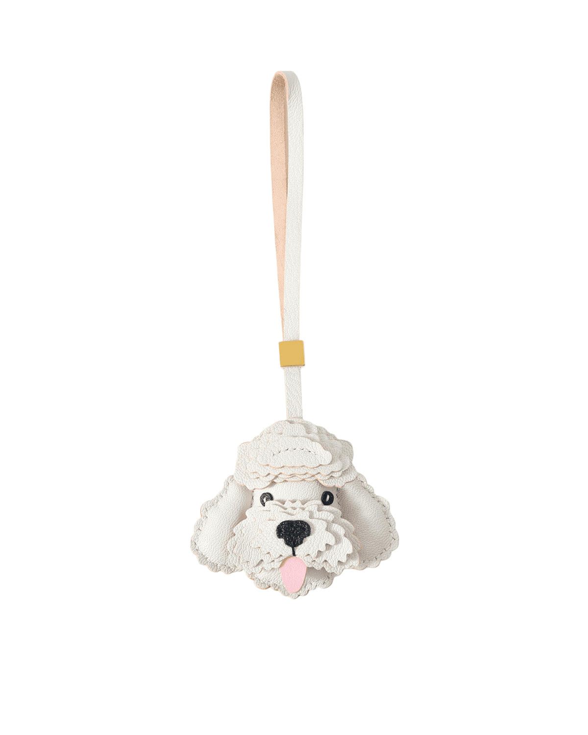 Handmade Leather Poodle Charm (Creamy White Fluffy Tongue-Out Version)