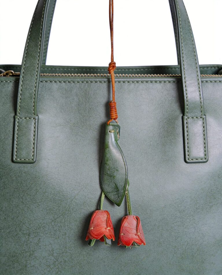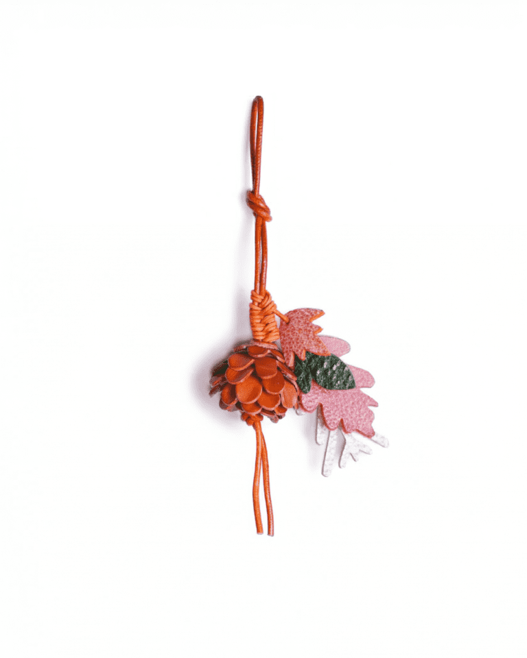Handmade Leather Autumn Forest Charm (Pine Cone & Maple Leaf Bouquet)