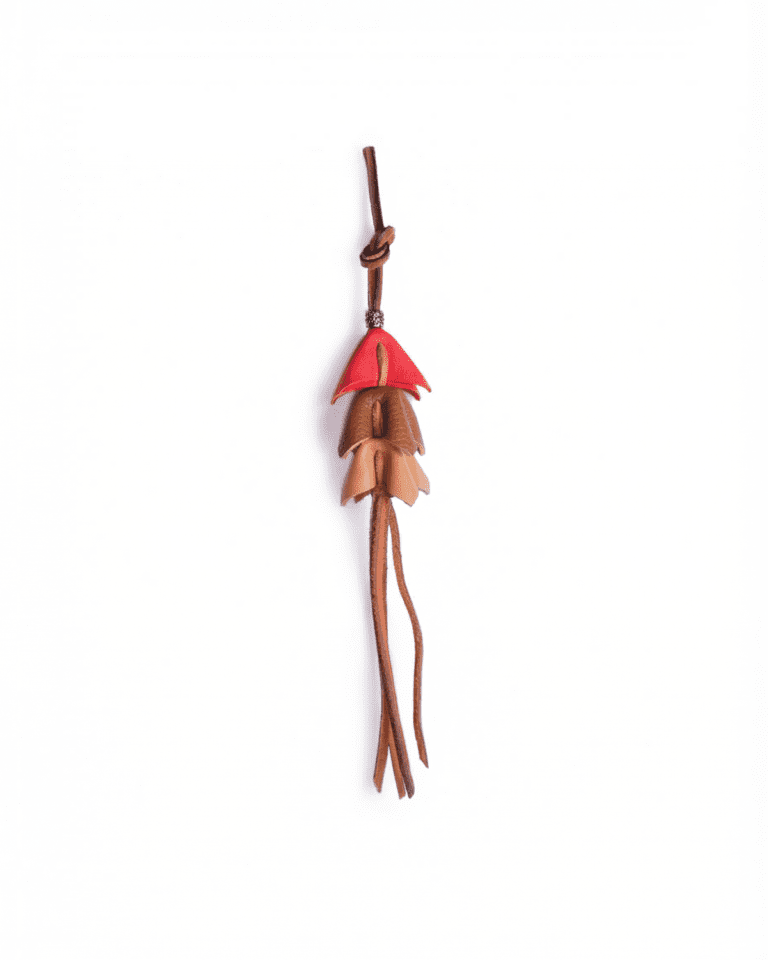 Handmade Leather Bellflower Charm with Layered Petal & Tassel Detail
